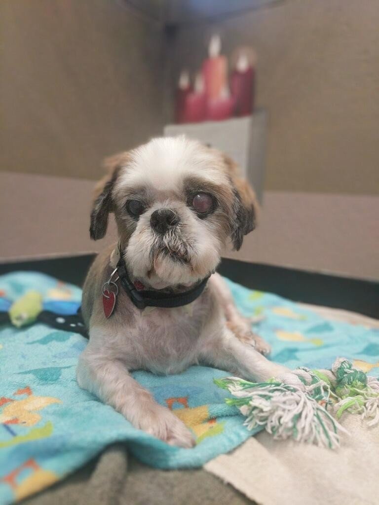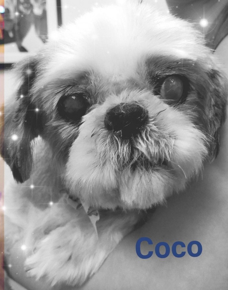 Such a sweet boy, CoCo was confiscated from a neglect case. He is an older boy, vets tell us 10. He is blind and a little hard of hearing, but sweet and a good companion dog. He is mostly house trained with access to the outside. He needs a yard, does not like to walk on a leash. Since this picture we have had to have one of his eyes removed. Such a lovely soul with such a hard life. Hoping someone can see his halo and give him the love he so deserves.