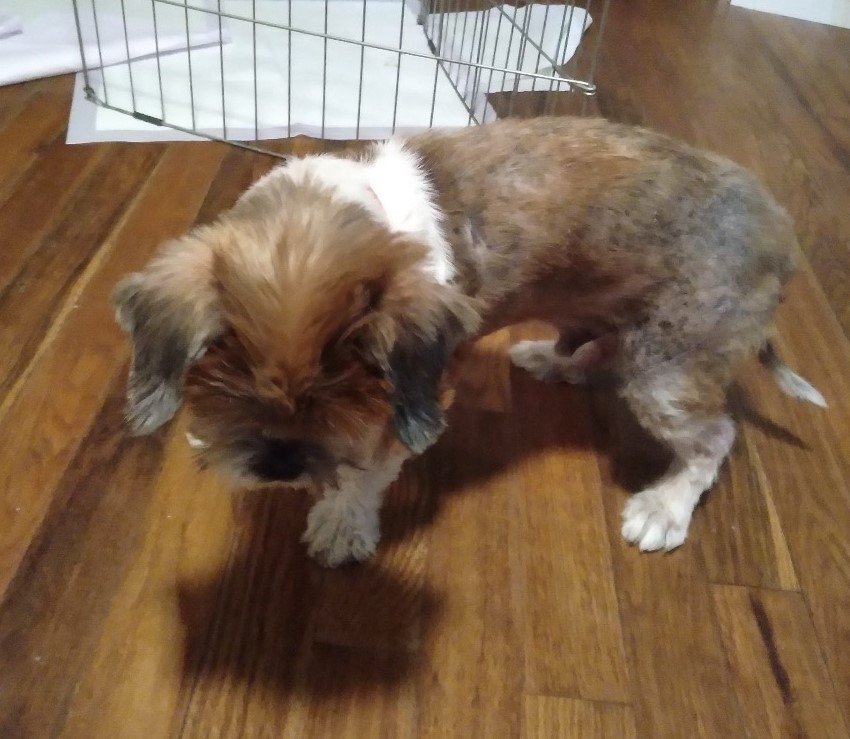 Frankie came from a really bad high kill shelter in pretty bad shape. He had skin infection, pain and from sleeping on a concrete floor. His face was wet with tears and a mouth full of infection. After a couple of months of rest and medical care his darling personality emerged. He is 10 years old with a very hard life. He is blind, but fearless and gets around great. With rest and good food his pain has disappeared. He is great about doing his biz outside once you show him how to get there. No stairs please. He is great with other dogs and loves your company.